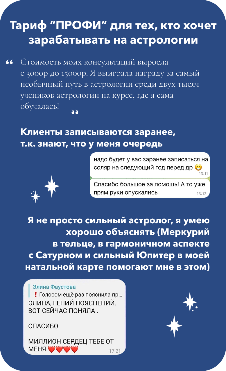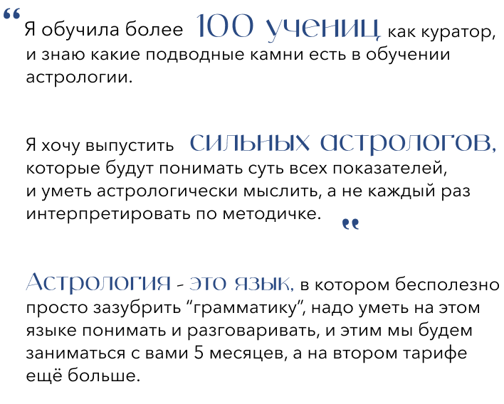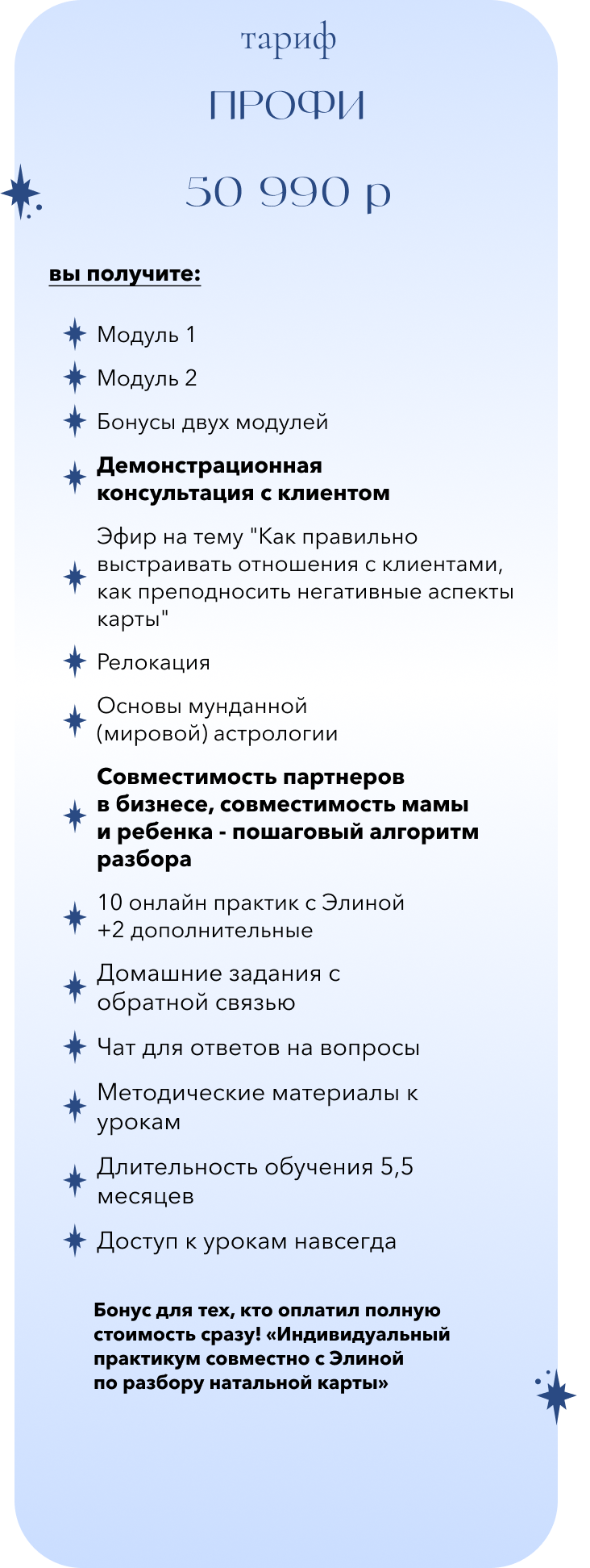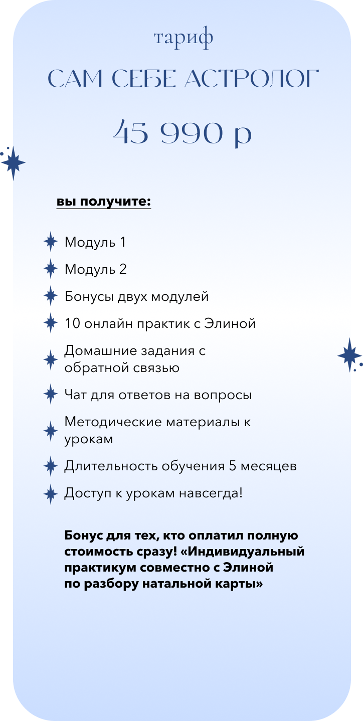 Ни одно видео или статья в интернете не дадут вам методологию и систему работы с картами, не даст поддержку личную, если у вас будут вопросы. То есть вы можете пособирать кучу вариантов интерпретаций, а что с этим делать дальше? Как объединить, если всё друг другу противоречит? Как смотреть потом в глаза человеку, которому ты отдал не разбор, а кашу из расшифровок показателей?